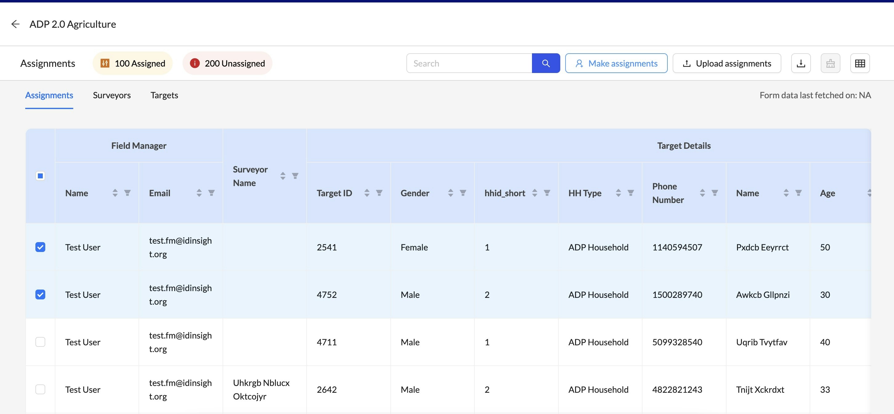 Choose one or more targets to assign to a surveyor.
