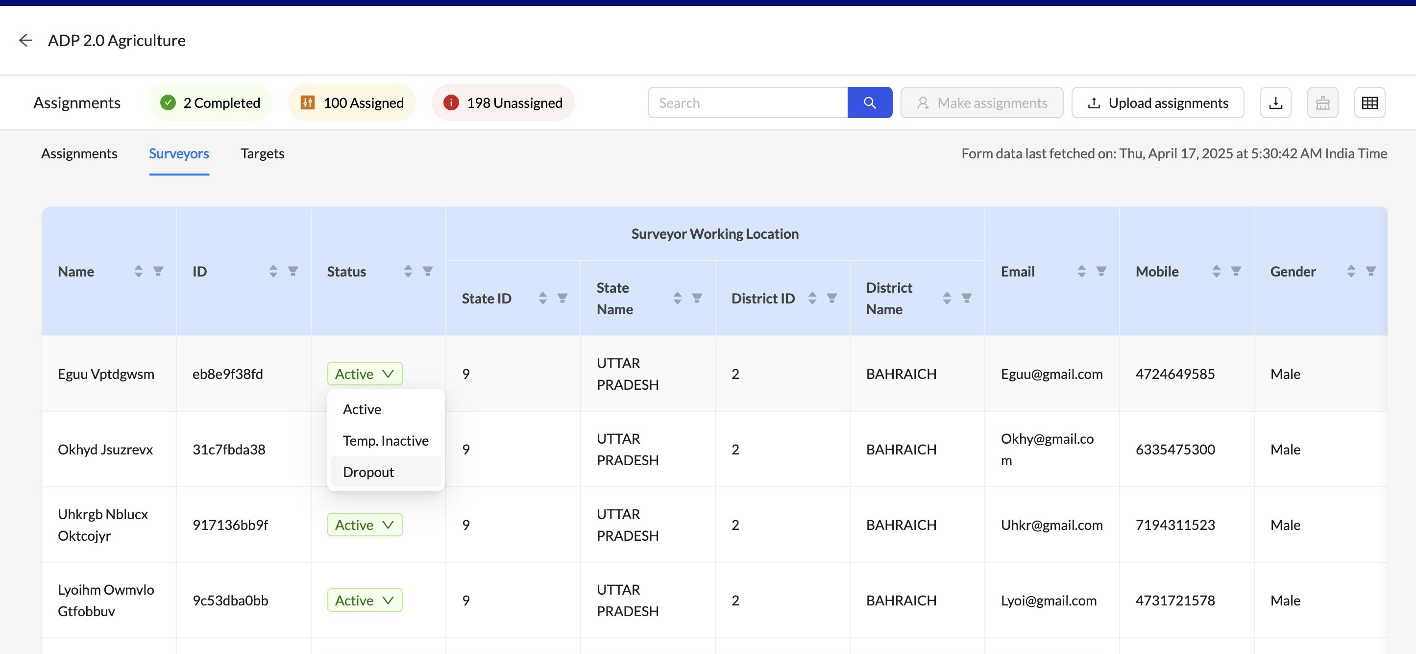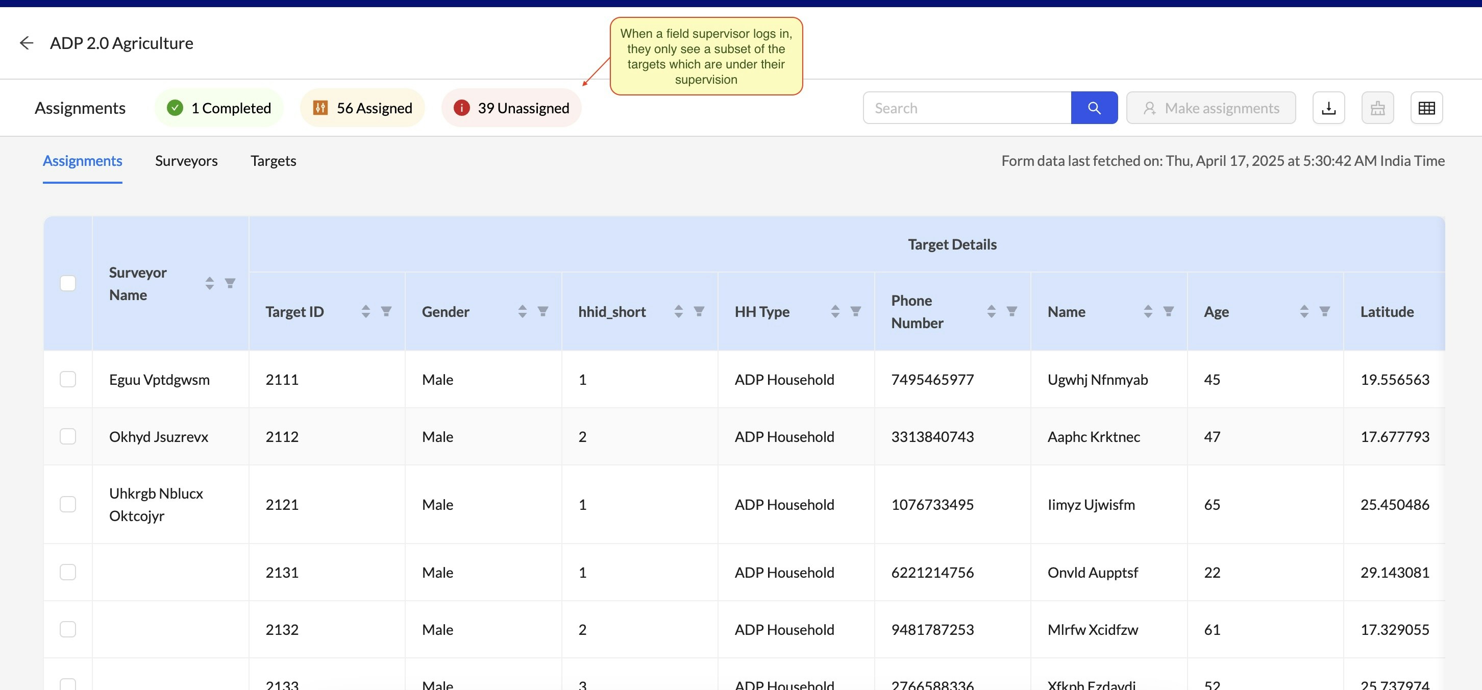 your target and surveyor lists among field supervisors using matching criteria