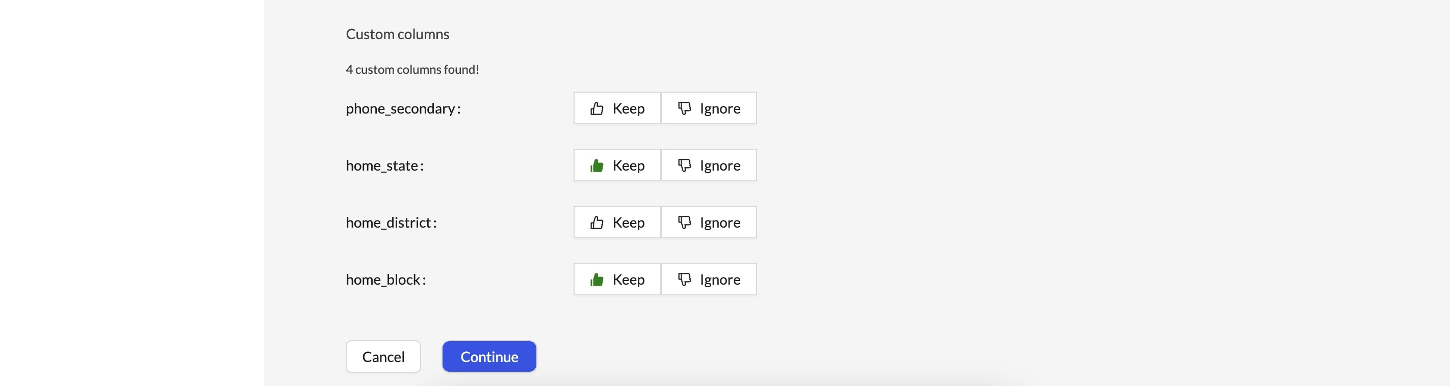For each of the additional columns, select ‘Keep’ or ‘Ignore’.